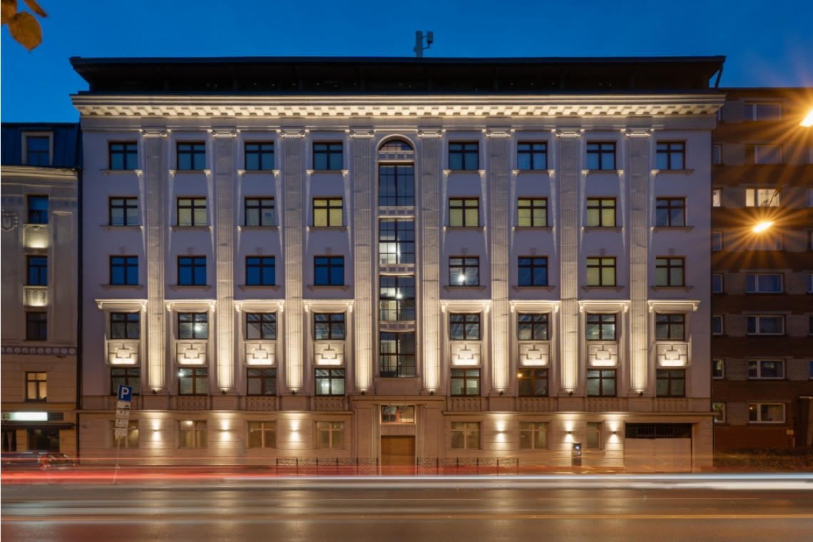 Septiņstāvu neoklasicisma namam Rīgas klusajā centrā, Pulkveža Brieža ielā pabeigta ielas fasādes atjaunošana - 1939. gadā celtā ēka atguvusi savu spozmi, papildinot Rīgas klusā centra arhitektūru. Nams ir daļa no divu ēku dzīvojamā kompleksa, ko par premium mājokļu projektu pārbūvē Latvijas nekustamo īpašumu attīstītājs “River Properties”.