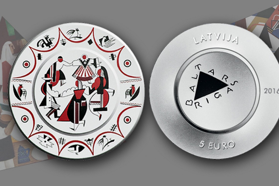 Latvijas porcelāna un fajansa trauku apgleznošanas darbnīcai Baltars veltītā monēta veidota, reproducējot šķīvja Deja (kompozīcijas autors Romans Suta; 1927) attēlu un tā formā.