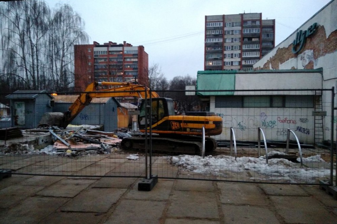 Grausta stāvoklī esošais nekustamais īpašums Rīgā, Iļģuciemā, Lidoņu ielā 27 - bijusī kinoteātra Ilga ēka - tikko no apkārtējās teritorijas nodalīts ar sētu, kā arī izvietota informācija par iecerētajiem būvdarbiem.